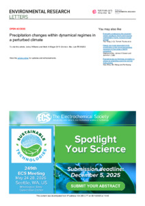 It is advisable to refer to the publisher's version if you intend to cite from this work. See Guidance on citing. To link to this item DOI: 10.1088/1748-9326/5/3/035202 Abstract/SummaryTropical precipitation and the character of its adjustment in response to climate warming have been examined in an ensemble of climate models. Partitioning the 500 hPa pressure velocity, ω, into four basic dynamical regimes reveals that areas which exhibit a reversal of ω from descent to ascent make a disproportionately large contribution to the total precipitation change. The four regimes’ occurrences are remarkably consistent across the ten models considered but the inter-model spread of some of the precipitation changes is very large. This large variation is, however, primarily due to two of the models, IPSL and CCSM3. A further separation into ‘dynamic’ and ‘thermodynamic’ changes confirms that the inter-model spread in precipitation is related to variations in the dynamical responses of the models. The reliability of models for climate change studies can to some extent be gauged by their ability to represent present day climate variability. An example, using interannual variability, is presented for the Hadley Centre model, HadGEM1. This highlights potential strengths and weaknesses of the model regarding simulation of the relationships between precipitation, surface temperature, and the large-scale circulation.