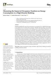 It is advisable to refer to the publisher's version if you intend to cite from this work. See Guidance on citing. To link to this item DOI: 10.3390/buildings15193598 Abstract/SummaryBuildings significantly impact the environment, accounting for 36% of global final energy consumption and 37% of total carbon emissions. Therefore, reducing energy consumption and mitigating carbon emissions in the building sector is of paramount importance. To achieve this, several factors should be considered. Among them, building occupants are key drivers in the operation of building services that directly influence energy consumption and energy-related emissions. In this paper, one year of raw energy consumption data from a high-density higher education building in the UK was processed to study the correlation between energy consumption and occupancy level. Additionally, a simulation model was developed to measure the impact of occupancy numbers on building energy consumption. Various data analyses were performed, including correlation, regression, and sensitivity analysis. The results demonstrate a strong correlation between occupancy numbers and electricity consumption of 71.5%. Conversely, 18% was found between occupancy numbers and heat energy consumption, indicating no correlation. The sensitivity analysis results on the impact of changing occupancy numbers in the simulated model, ranging from –30% to +30%, aligned with the results of the analyses performed.