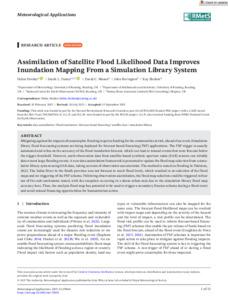 Assimilation of Satellite Flood Likelihood Data Improves Inundation Mapping From a Simulation Library SystemHooker, H., Dance, S. L., Mason, D. C., Bevington, J. and Shelton, K. (2025) Assimilation of Satellite Flood Likelihood Data Improves Inundation Mapping From a Simulation Library System. Meteorological Applications, 32 (5). e70104. ISSN 1350-4827