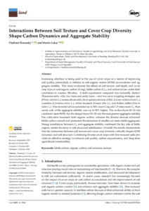 It is advisable to refer to the publisher's version if you intend to cite from this work. See Guidance on citing. To link to this item DOI: 10.3390/land14102044 Abstract/SummaryIncreasing attention is being paid to the use of cover crops as a means of improving soil quality, particularly in relation to soil organic matter (SOM) accumulation and aggregate stability. This study evaluated the effects of soil texture, soil depth, and cover crop type on soil organic carbon (Corg), labile carbon (CL), and soil structure under field conditions in western Slovakia. A field experiment compared two texturally distinct Phaeozem soils—silty clay loam and sandy loam —and two cover cropping strategies: pea (Pisum sativum L.) monoculture and a four-species mixture of flax (Linum usitatissimum L.), camelina (Camelina sativa L.), white mustard (Sinapis alba L.), and Italian millet (Setaria italica L.). Fine-textured soil accumulated up to 50% more Corg and 1.5 times more CL than sandy soil, while aggregate stability was up to 90% higher. The surface layer (0–10 cm) contained more SOM, but the deeper layer (10–20 cm) showed greater aggregate stability. Pea cultivation increased total organic carbon, whereas the diverse mixture enhanced labile carbon content and promoted the formation of smaller yet more stable aggregates. Strong correlations between CL and aggregate stability confirmed the key role of labile organic matter fractions in soil structural stabilisation. Overall, the results demonstrate that the interaction between soil texture and cover crop diversity critically shapes SOM dynamics and soil structure. Combining diverse cover crops with fine-textured soils provides an effective strategy to enhance soil quality, carbon sequestration, and long-term agricultural sustainability.