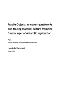 Fragile objects: uncovering networks and tracing material culture from the ‘Heroic Age’ of Antarctic explorationHammant, H. (2025) Fragile objects: uncovering networks and tracing material culture from the ‘Heroic Age’ of Antarctic exploration. PhD thesis, University of Reading