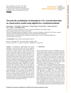 It is advisable to refer to the publisher's version if you intend to cite from this work. See Guidance on citing. To link to this item DOI: 10.5194/gmd-18-7501-2025 Abstract/SummaryA comprehensive understanding and accurate modelling of the terrestrial carbon cycle are of paramount importance to improve projections of the global carbon cycle and more accurately gauge its impact on global climate systems. Land surface models, which have become an important component of weather and climate applications, simulate key aspects of the terrestrial carbon cycle, such as photosynthesis and respiration. These models rely on parameterisations that require careful calibration. In this study we explore the assimilation of atmospheric CO2 concentration data for parameter calibration of the ORganizing Carbon and Hydrology In Dynamic EcosystEms (ORCHIDEE) land surface model using an EnVarDA method, an adjoint-free ensemble-variational data assimilation method. By circumventing the challenges associated with developing and maintaining tangent linear and adjoint models, the EnVarDA method offers a very promising alternative. Using synthetic observations generated through a twin experiment, we demonstrate the ability of EnVarDA to assimilate atmospheric CO2 concentrations for model parameter calibration. We then compare the results to a VarDA method that uses finite differences to estimate tangent linear and adjoint models, which reveals that EnVarDA is superior in terms of computational efficiency, fit to the observations, and parameter recovery.