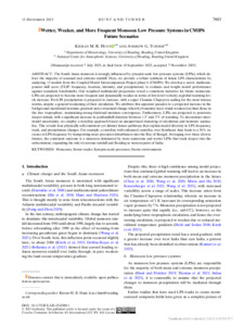 Wetter, weaker, and more frequent monsoon low-pressure systems in CMIP6 future scenarios.