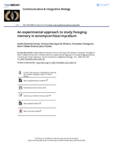 It is advisable to refer to the publisher's version if you intend to cite from this work. See Guidance on citing. To link to this item DOI: 10.1080/19420889.2025.2580130 Abstract/SummaryBehavioral ecology of fungi is an emerging field investigating how fungi respond to environmental stimuli through morphological and physiological changes. Progress requires methodologies suited to fungal biology. Here, we developed an experimental approach to test for memory in the ectomycorrhizal fungus Laccaria bicolor. We hypothesized that mycelium exposed to pea cotyledons would retain directional information about the nutrient source. To test this, a portion of the mycelium was transferred to fresh medium, where memory would be assessed by asymmetrical growth toward the former nutrient position. The hypothesis was not supported, but the methods offer a framework for exploring fungal behavior in both ectomycorrhizal and saprotrophic species. Although no evidence of memory was found, this study highlights the value of publishing both positive and negative results and provides tools to advance research on fungal cognition and behavior.