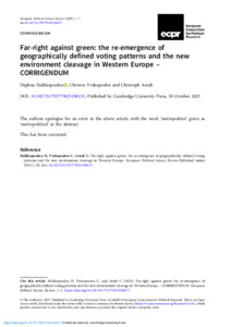 Far-right against green: the re-emergence of geographically defined voting patterns and the new environment cleavage in Western Europe.