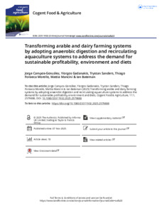 Transforming arable and dairy farming systems by adopting anaerobic digestion and recirculating aquaculture systems to address the demand for sustainable profitability, environment and diets