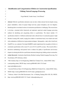 Identification and categorization of defects in construction specifications utilizing natural language processing.