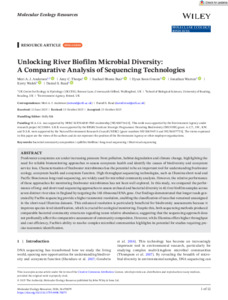 It is advisable to refer to the publisher's version if you intend to cite from this work. See Guidance on citing. To link to this item DOI: 10.1111/1755-0998.70075 Abstract/SummaryFreshwater ecosystems are under increasing pressure from pollution, habitat degradation and climate change, highlighting the need for reliable biomonitoring approaches to assess ecosystem health and identify the causes of biodiversity and ecosystem service loss. Characterisation of freshwater microbiomes has the potential to be an important tool for understanding freshwater ecology, ecosystem health and ecosystem function. High‐throughput sequencing technologies, such as Illumina short‐read and Pacific Biosciences long‐read sequencing, are widely used for microbial community analysis. However, the relative performance of these approaches for monitoring freshwater microbiomes has not been well explored. In this study, we compared the performance of long‐ and short‐read sequencing approaches to assess archaeal and bacterial diversity in 42 river biofilm samples across seven distinct river sites in England by targeting the 16S ribosomal RNA gene. Our findings demonstrated that longer reads generated by PacBio sequencing provide a higher taxonomic resolution, enabling the classification of taxa that remained unassigned in the short‐read Illumina datasets. This enhanced resolution is particularly beneficial for biodiversity assessments because it improves species‐level identification, which is crucial for ecological monitoring. Despite this, both sequencing methods produced comparable bacterial community structures regarding taxon relative abundance, suggesting that the sequencing approach does not profoundly affect the comparative assessment of community composition. However, while Illumina offers higher throughput and cost efficiency, PacBio's ability to resolve complex microbial communities highlights its potential for studies requiring precise taxonomic identification.