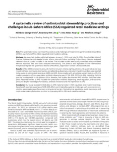 A systematic review of antimicrobial stewardship practices and challenges in sub-Sahara Africa (SSA) regulated retail medicine settings.