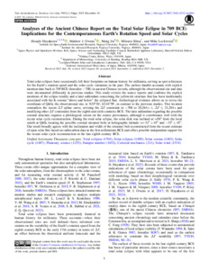 Analyses of the ancient Chinese report on the total solar eclipse in 709 BCE: implications for the contemporaneous earth’s rotation speed and solar cycles.