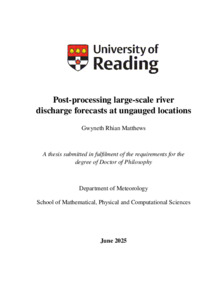 Post-processing large-scale river discharge forecasts at ungauged locationsMatthews, G. R. (2025) Post-processing large-scale river discharge forecasts at ungauged locations. PhD thesis, University of Reading