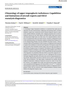 Climatology of upper‐tropospheric turbulence: capabilities and limitations of aircraft reports and ERA5 reanalysis diagnostics.
