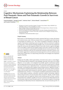 Cognitive mechanisms explaining the relationship between post-traumatic stress and post-traumatic growth in survivors of breast cancer.
