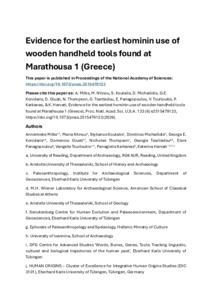 Milks, A. ORCID: https://orcid.org/0000-0003-0779-6200, Ntinou, M., Koutalis, S., Michailidis, D., Konidaris, G., Giusti, D., Thompson, N., Tsartsidou, G., Panagopoulou, E., Tourloukis, V., Karkanas, P. and Harvati, K. (2026) Evidence for the earliest hominin use of wooden handheld tools found at Marathousa 1 (Greece). Proceedings of the National Academy of Sciences of the United States of America, 123 (6). e2515479123. ISSN 1091-6490 doi: 10.1073/pnas.2515479123
