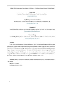 MD&A disclosure and investment efficiency: evidence from Chinese listed firms.