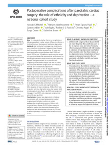 Postoperative complications after paediatric cardiac surgery: the role of ethnicity and deprivation – a national cohort study.