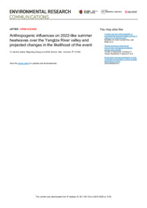 Zhang, M., Dong, B. ORCID: https://orcid.org/0000-0003-0809-7911, Robson, J. ORCID: https://orcid.org/0000-0002-3467-018X and Schiemann, R. ORCID: https://orcid.org/0000-0003-3095-9856 (2025) Anthropogenic influences on 2022-like summer heatwaves over the Yangtze River valley and projected changes in the likelihood of the event. Environmental Research Communications, 7 (12). 121008. ISSN 2515-7620 doi: 10.1088/2515-7620/ae2a98