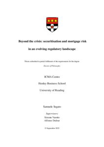Segato, S. (2025) Beyond the crisis: securitisation and mortgage risk in an evolving regulatory landscape. PhD thesis, University of Reading. doi: 10.48683/1926.00127585