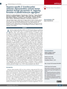 Sequence-specific 2'-O-methoxyethyl antisense oligonucleotides activate human platelets through glycoprotein VI, triggering formation of platelet-leukocyte aggregates.