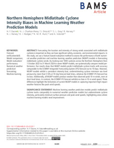 Northern hemisphere midlatitude cyclone intensity biases in machine learning weather prediction models.