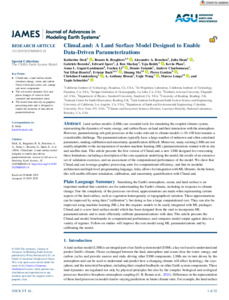 Deck, K., Braghiere, R. K., Renchon, A. A., Sloan, J., Bozzola, G., Speer, E., Mackay, J. B., Reddy, T., Phan, K., Gagné-Landmann, A. L., Li, Y., Yatunin, D., Charbonneau, A., Efrat-Henrici, N., Bach, E. ORCID: https://orcid.org/0000-0002-9725-0203, Ma, S., Gentine, P., Frankenberg, C., Bloom, A. A., Wang, Y., Longo, M. and Schneider, T. (2026) ClimaLand: a land surface model designed to enable data-driven parameterizations. Journal of Advances in Modeling Earth Systems, 18 (1). e2025MS005118. ISSN 1942-2466 doi: 10.1029/2025MS005118