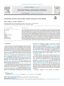 Lamperti, F. and Castellani, D. (2026) Automation and the risk of labor market exclusion across Europe. Structural Change and Economic Dynamics, 77. pp. 62-76. ISSN 0954349X doi: 10.1016/j.strueco.2025.12.014