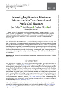 Phillips, J., Peplow, D., Oliver, C. and Purnell, C. (2025) Balancing legitimacies: efficiency, fairness and the transformation of parole oral hearings. British Journal of Criminology. ISSN 1464-3529 doi: 10.1093/bjc/azaf117