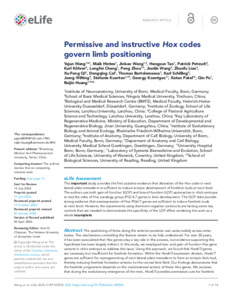 Wang, Y., Hintze, M., Wang, J., Tao, H., Petzsch, P., Köhrer, K., Cheng, L., Zhou, P., Wang, J., Liao, Z., Qi, X.-F., Bartolomaeus, T., Schilling, K., Wilting, J., Kuerten, S., Koentges, G., Patel, K., Pu, Q. and Huang, R. (2026) Permissive and instructive Hox codes govern limb positioning. eLIFE. ISSN 2050-084X doi: 10.7554/eLife.100592.2