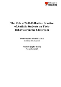 Jagdeo-Bailey, M. (2025) The role of self-reflective practice of autistic students on their behaviour in the classroom. EdD thesis, University of Reading. doi: 10.48683/1926.00128074