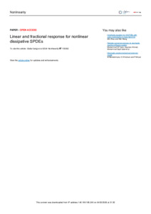 Linear and fractional response for nonlinear dissipative SPDEs.