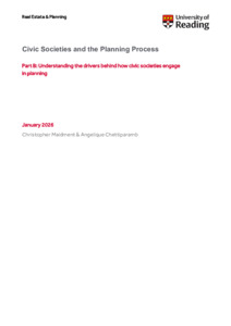 Maidment, C. ORCID: https://orcid.org/0000-0002-9158-6910 and Chettiparamb, A. ORCID: https://orcid.org/0000-0001-7134-5725, (2026) Civic societies and the planning process part B: understanding the drivers behind how civic societies engage in planning. Report. University of Reading, Reading. pp38.