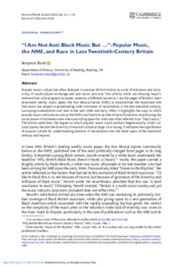 Bland, B. ORCID: https://orcid.org/0000-0002-6620-8096 (2026) “I am not anti black music but …”: popular music, the NME , and race in late twentieth-century Britain. Journal of British Studies, 65. e11. ISSN 1545-6986 doi: 10.1017/jbr.2026.10204