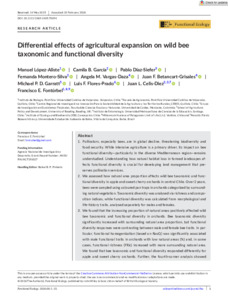 Differential effects of agricultural expansion on wild bee taxonomic and functional diversity.