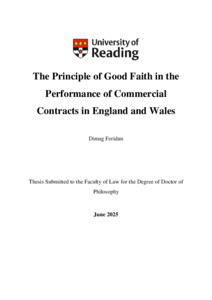 Feridun, D. (2026) The principle of good faith in the performance of commercial contracts in England and Wales. PhD thesis, University of Reading. doi: 10.48683/1926.00128964