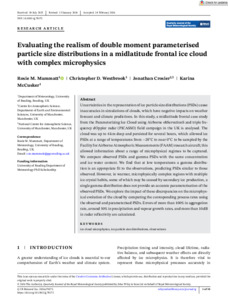 Evaluating the realism of double moment parameterised particle size distributions in a midlatitude frontal ice cloud with complex microphysics.