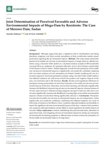 Background: Although mega-dams play a significant role in development, providing electricity, irrigation, and flood control, perceptions of their contribution remain mixed, particularly regarding the environmental impacts. Methods: This study jointly determines perceived favorable and adverse environmental impacts of mega-dams by affected residents using a bivariate Tobit model on a clustered random sample of 300 households surveyed from (a) upstream, (b) upstream-relocated, and (c) downstream communities of the Merowe Dam in Sudan. Model diagnostic reveals that the perception of favorable and adverse environmental impacts is significantly and positively correlated, implying that univariate analyses of such perceptions are biased, thereby justifying the use of a bivariate approach. Such joint perception analysis using a bivariate Tobit model confirms that affected residents are well aware of both the positive and negative impacts of the dam, not commonly seen in the literature. Results: Results reveal significant differences in perception among communities on individual indicators of favorable and adverse environmental impacts of the dam. Education, income from farming, and relocation significantly decrease the likelihood of perceiving adverse environmental impacts whereas farmers of all farm types increase it. Selected farming categories and gain in land size after dam’s construction significantly increases the likelihood of scoring high on favorable environmental impacts whereas income from fishing significantly reduces it. Conclusions: Perception towards the favorable and adverse environmental impacts are not independent, rather significantly and positively correlated, confirming that affected residents are aware of both types of impacts of the Merowe Dam. Upstream-relocated residents are less likely to report the significant adverse environmental impacts of the dam, whereas both upstream and upstream-relocated residents are less likely to report significant favorable impacts of the dam. Policy implications: Include establishing educational institutions, allocation of agricultural land, and mitigating adverse environmental impacts by setting up community environmental monitoring programs in affected areas to boost community perception of the favorable environmental impacts of mega-dams.