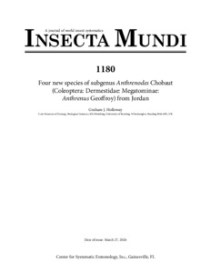 Holloway, G. J. (2026) Four new species of subgenus Anthrenodes Chobaut (Coleoptera: Dermestidae: Megatominae: Anthrenus Geoffroy) from Jordan. Insecta Mundi, 1180. pp. 1-14. ISSN 1942-1354 doi: 10.64338/im.1180.uhxqu