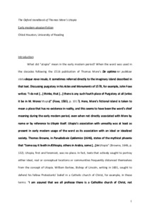 This is an examination of early modern English utopian fiction after More, looking in particular at More's influence on later Renaissance utopian writing via Henry Neville's The Isle of Pines.