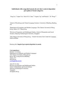Individuals with congenital amusia do not show context-dependent perception of tonal categories.